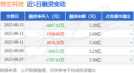 本站消息,8月13日,恒生科技(159740)融资买入1.74亿元,融资偿还2.14亿元,融资净卖出4047.92万元,融资余额5.29亿元,近20个交易日中有11个交易日出现融资净买入。